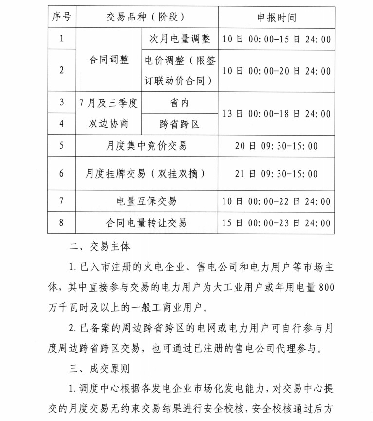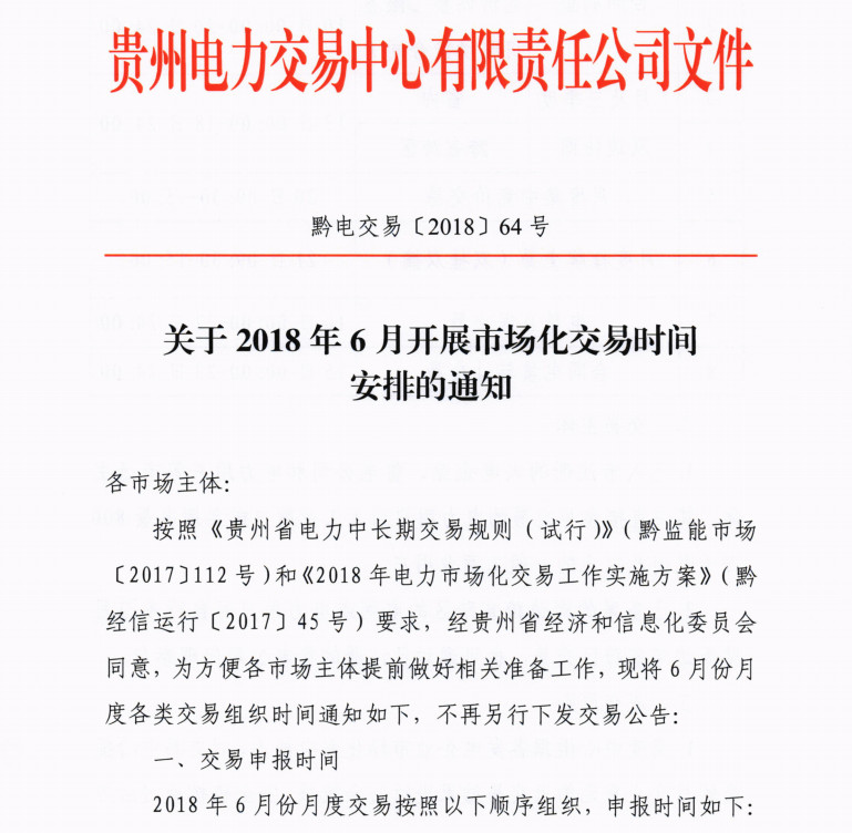 貴州2018年6月開展市場(chǎng)化交易時(shí)間安排