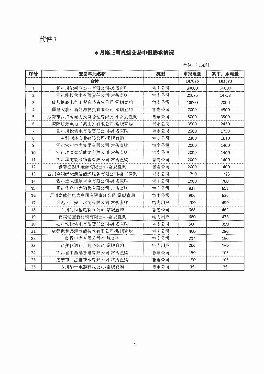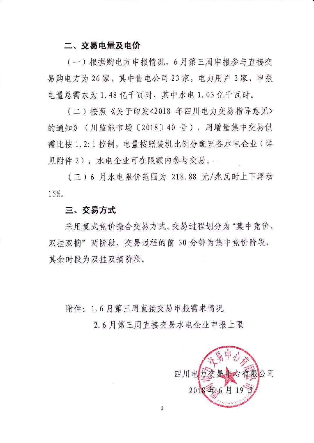 四川關(guān)于開展2018年6月第三周直接交易的公告