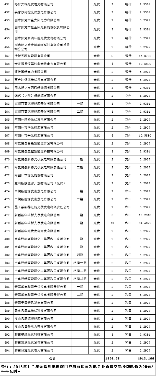依據(jù)自治區(qū)發(fā)改、經(jīng)信委、住建廳、能監(jiān)辦委聯(lián)合《關(guān)于印發(fā)我區(qū)電供暖價(jià)格機(jī)制指導(dǎo)意見(jiàn)的通知》(新發(fā)改能價(jià)〔2017〕1659號(hào))和《關(guān)于新疆電網(wǎng)2018年上半年采暖期電供暖用戶與新能源發(fā)電企業(yè)直接交易方案的批復(fù)》(新經(jīng)信電力函〔2017〕530號(hào))文件精神,新疆電力交易中心依規(guī)完成2018年上半年電采暖直接交易的組織、執(zhí)行工作。截至4月15日交易期結(jié)束,電供暖用戶實(shí)際用電量42413.1663萬(wàn)千瓦時(shí),超過(guò)掛牌成交電量(37500萬(wàn)千瓦時(shí))4913.1663萬(wàn)千瓦時(shí)。按照方案批復(fù)文件中“2017-2018年冬季供暖期結(jié)束后,當(dāng)實(shí)際用電量小于本次交易電量時(shí),按實(shí)際用電結(jié)算;當(dāng)實(shí)際用電量大于本次交易電量時(shí),差額電量由并網(wǎng)新能源發(fā)電企業(yè)平攤”的要求,在疆內(nèi)并網(wǎng)發(fā)電新能源企業(yè)按裝機(jī)容量比例分?jǐn)偅纬梢韵路謹(jǐn)偨Y(jié)果,現(xiàn)予以公示,公示期7天。如有問(wèn)題,及時(shí)反饋,并在公示期結(jié)束后統(tǒng)一修正。