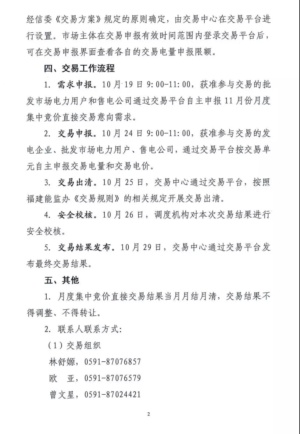 福建關于組織開展2018年11月份月度集中競價直接交易的公告