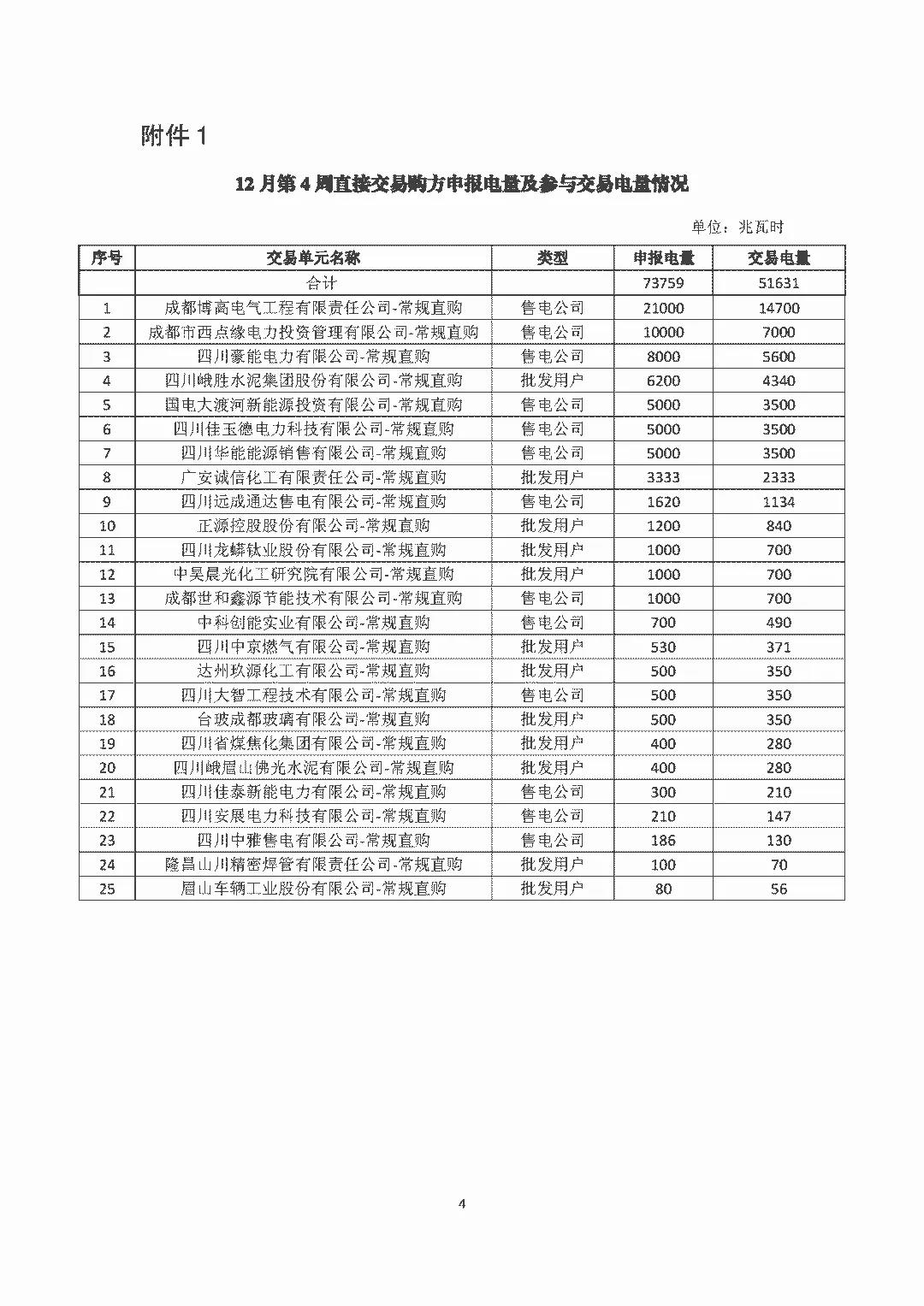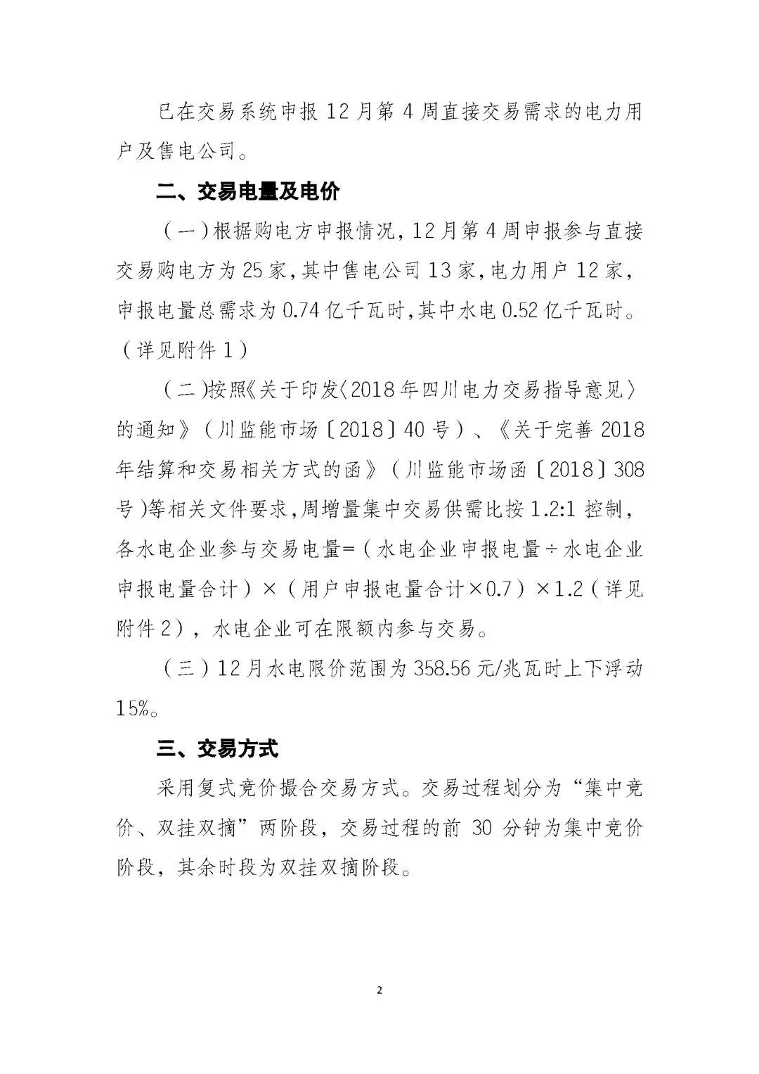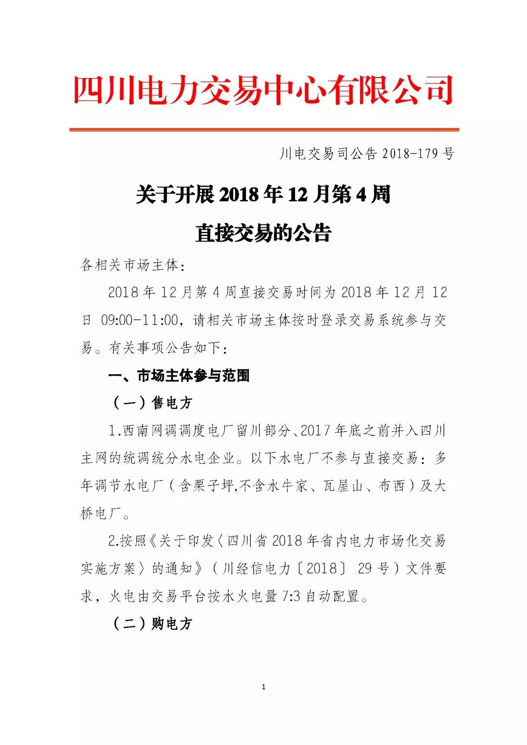 公告 | 四川關(guān)于開展2018年12月第4周直接交易的公告