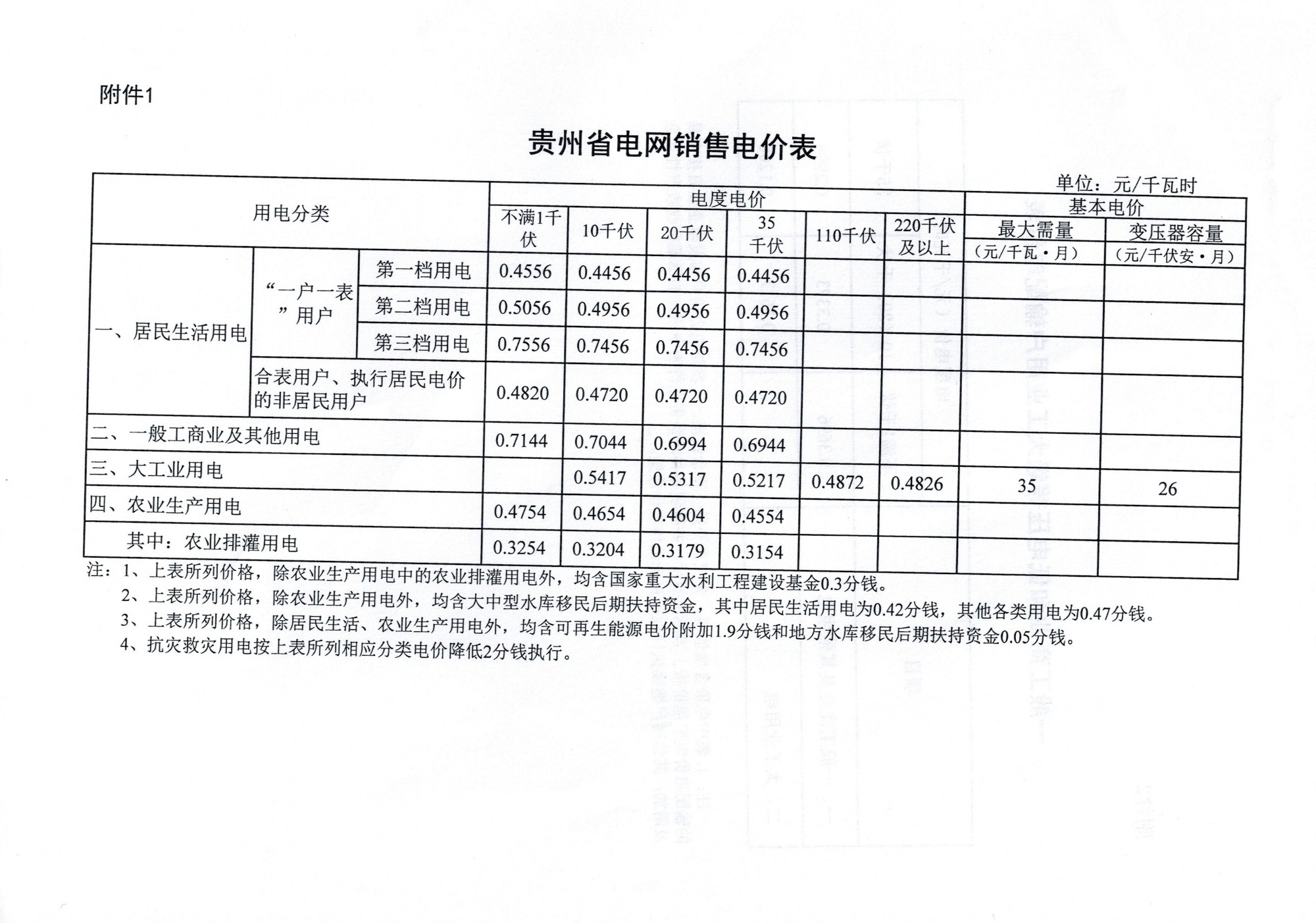 貴州:關(guān)于合理調(diào)整電價結(jié)構(gòu)有關(guān)事項的通知