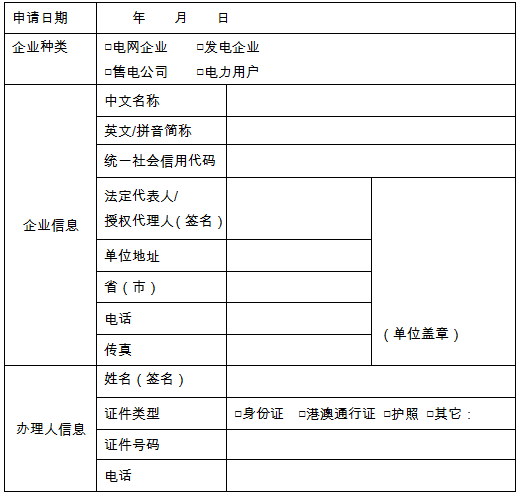 冀北發(fā)布電力市場(chǎng)主體注冊(cè)、信息變更、注銷申請(qǐng)書模板