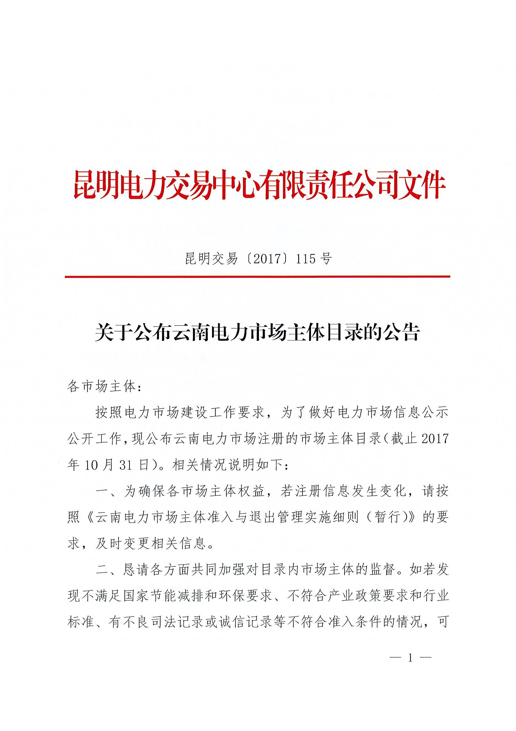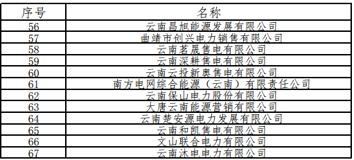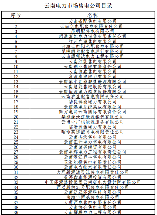 云南市場(chǎng)主體目錄發(fā)布 售電公司目錄67家 發(fā)電企業(yè)目錄355家