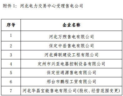 11月17日,河北電力交易中心發(fā)布了《關(guān)于售電公司公示結(jié)果的公告》,公告稱(chēng)10月17日至11月16日,河北電力交易中心受理河北萬(wàn)煦售電有限公司等7家售電公司,以及北京電力交易中心受理并在河北南部電網(wǎng)有售電業(yè)務(wù)的