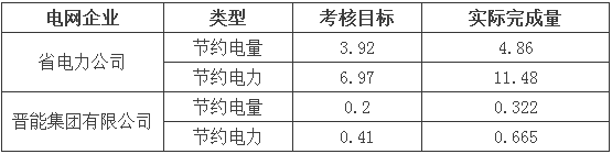 (一) 2017年節(jié)約電量目標(biāo)按照2016年經(jīng)營區(qū)域內(nèi)實際售電量的0.3%確定,具體指標(biāo)是:省電力公司4.01億千瓦時(不含躉售),晉能集團(tuán)有限公司0.21億千瓦時。