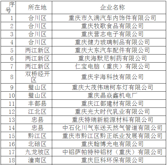 重慶2018年電力直接交易試點(diǎn)準(zhǔn)入新增企業(yè)名單的通知