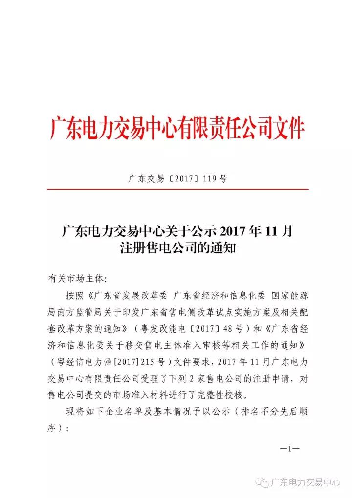 為做好售電公司的準(zhǔn)入審核等相關(guān)工作,廣東電力交易中心現(xiàn)對11月注冊申請的2家售電公司進(jìn)行公示,公示正文如下: