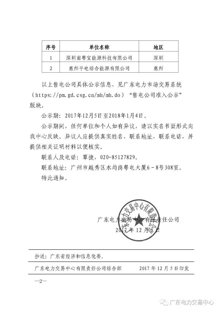為做好售電公司的準(zhǔn)入審核等相關(guān)工作,廣東電力交易中心現(xiàn)對11月注冊申請的2家售電公司進(jìn)行公示,公示正文如下:具體通知請各市場主體登錄廣東電力市場交易系統(tǒng)進(jìn)行查詢 https: pm gd csg cn