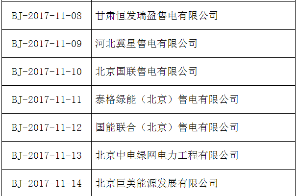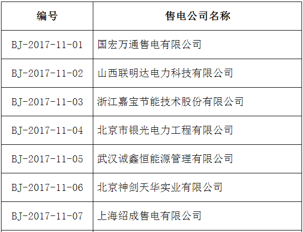 公示期間,任何單位和個(gè)人如有異議,可通過(guò)來(lái)電、來(lái)信、來(lái)訪等方式向北京電力交易中心實(shí)名反映。本次公示售電公司目錄如下: