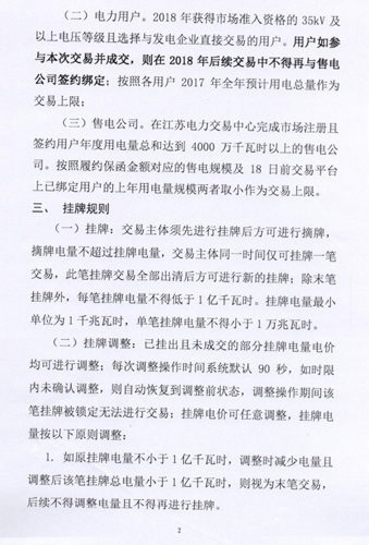 江蘇電力交易中心發(fā)布2018年江蘇電力市場(chǎng)年度掛牌交易公告