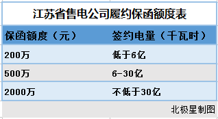 在《江蘇電力市場(chǎng)售電公司入市協(xié)議》中規(guī)定,簽約電量低于6億千瓦時(shí)的售電公司需提供不低于200萬人民幣的履約保函;簽約電量達(dá)到6億千瓦時(shí)、低于30億千瓦時(shí)的售電公司需提供不低于500萬人民幣的履約保函;簽約電量不低于 30 億千瓦時(shí)的售電公司需提供不低于2000萬人民幣的履約保函。