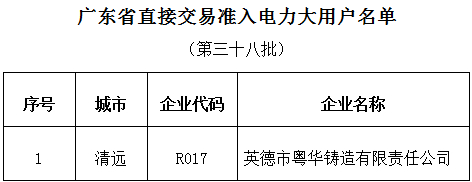 廣東第三十八批直接交易準(zhǔn)入電力大用戶名單