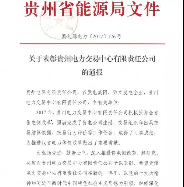 貴州電力交易中心榮獲貴州省能源局通報(bào)表彰