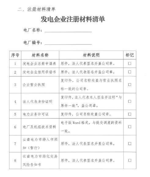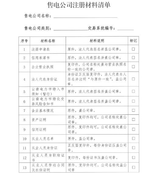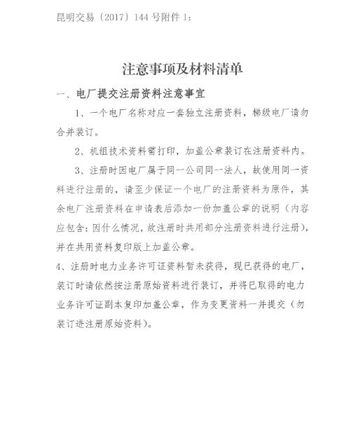 云南昆明進一步完善電力市場注冊資料的通知