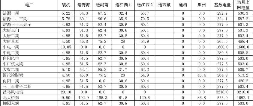 1 月計劃安排甘肅外送 20.95 億千瓦時,其中外送湖南電量5.95 億千瓦時(由北京交易中心組織,按北京交易中心交易結果執(zhí)行,火電執(zhí)行 3.57 億千瓦時,新能源執(zhí)行 2.38 億千瓦時);靈寶通道外送江西電量 2.4 億千瓦時(由北京交易中心組織,暫按北京交易中心無約束交易結果執(zhí)行,火電執(zhí)行 1.44 億千瓦時,新能源執(zhí)行 0.96 億千瓦時);德寶通道外送江西電量 4.9 億千瓦時(由北京交易中心組織,暫按北京交易中心無約束交易結果執(zhí)行,火電執(zhí)行 2.94 億千瓦時,新能源執(zhí)行 1.96 億千瓦時);外送青海電量 6 億千瓦時(火電執(zhí)行 4.2 億千瓦時;新能源執(zhí)行 1.8億千瓦時,按照月度申報出清結果執(zhí)行);外送西藏電量 1.7 億千瓦時(火電執(zhí)行 1.19 億千瓦時,新能源執(zhí)行 0.51億千瓦時)。購入網損電量 0.7332 億千瓦時。全月全省聯絡線凈送出交易電量20.22 億千瓦時。