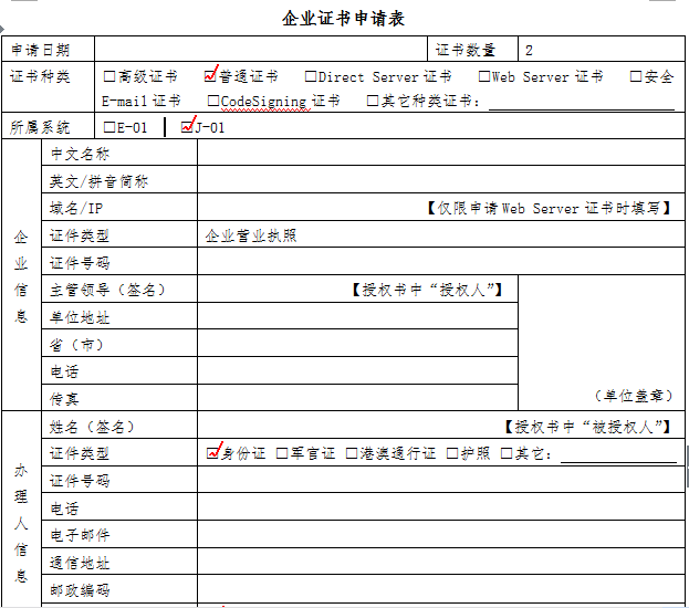 2.2企業(yè)證書申請表模板