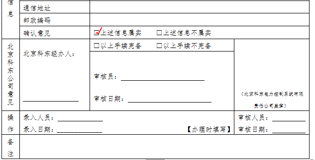 2.北京科東收到材料后進(jìn)行資質(zhì)審核;如審核未通過,北京科東負(fù)責(zé)聯(lián)系客戶在申請表中的聯(lián)系人,重新提交申請材料;