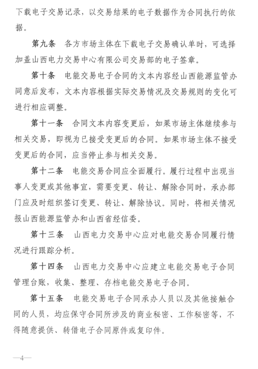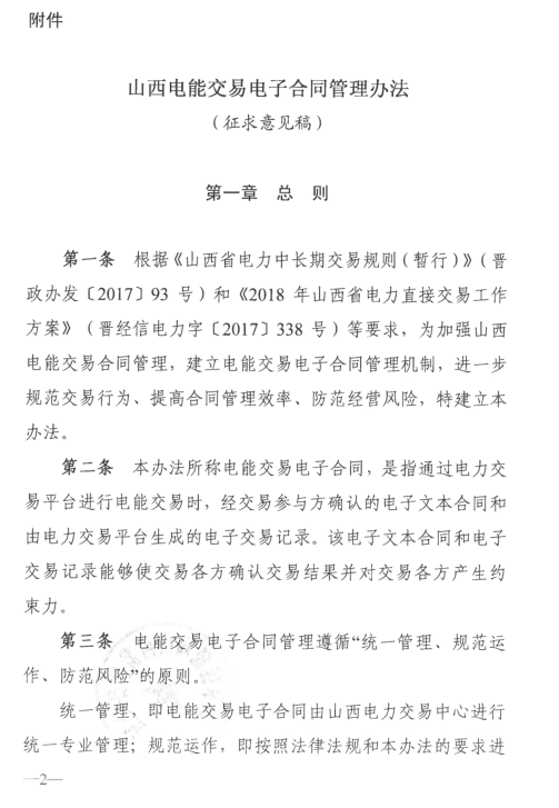 山西電能交易電子合同管理辦法(征求意見稿)發(fā)布
