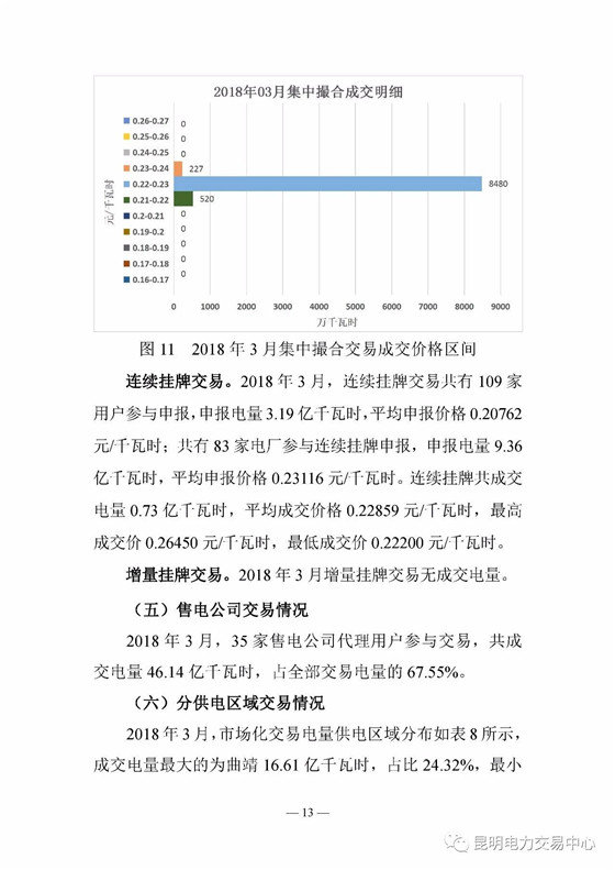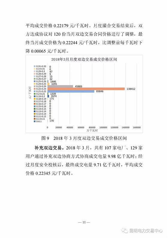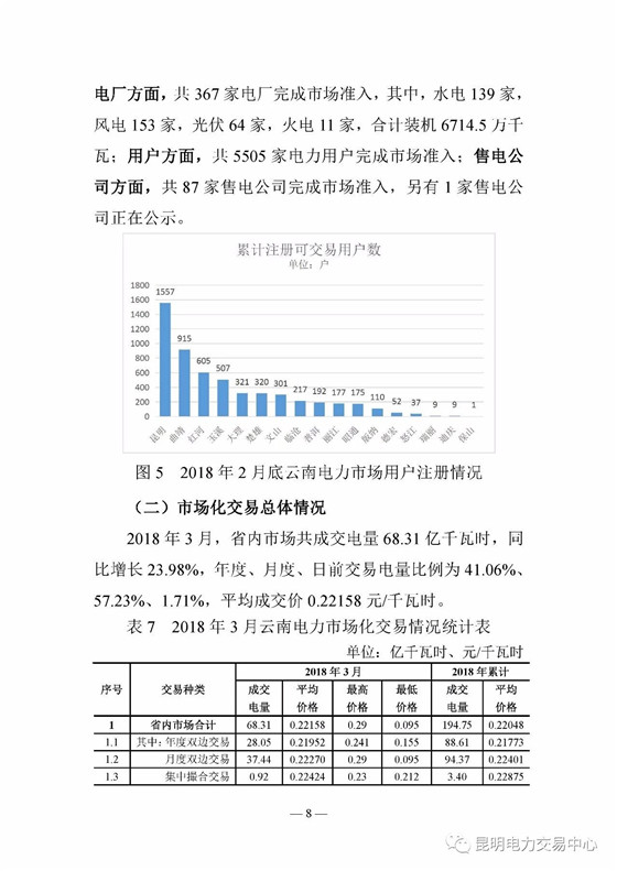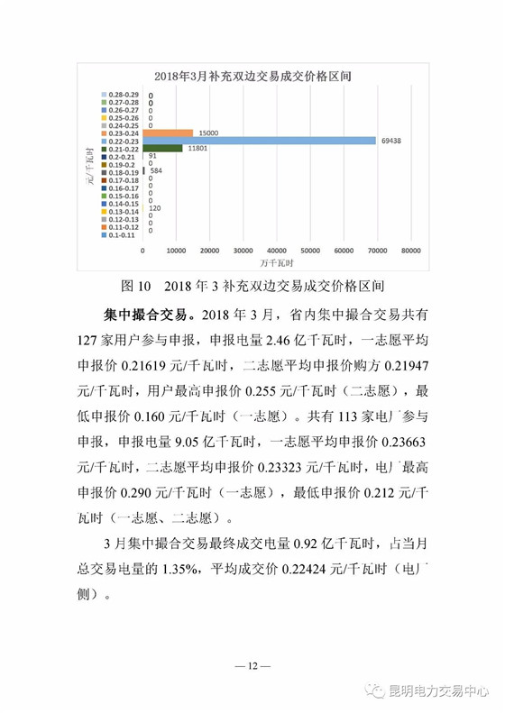 昆明電力交易中心日前發(fā)布了《云南電力交易月報(bào)(2018年3月)》,2018年2月,云南日前電量市場(chǎng)累計(jì)成交電量1 45億千瓦時(shí),平均成交價(jià)0 19337