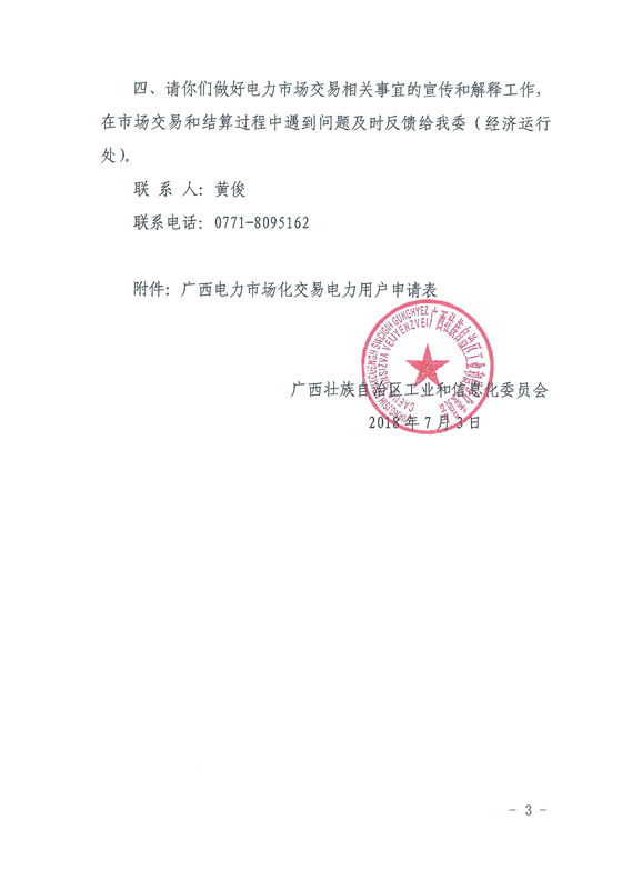 廣西工信委日前發(fā)布了《自治區(qū)工業(yè)和信息化委關(guān)于明確10千伏電壓等級(jí)用戶參與電力市場(chǎng)交易有關(guān)事宜的通知(桂工信運(yùn)行[2018]525號(hào))》,為確