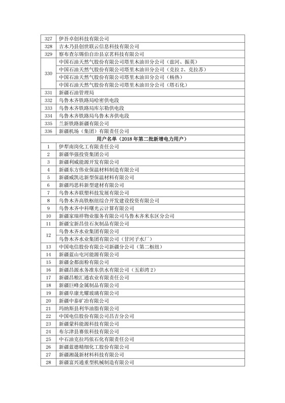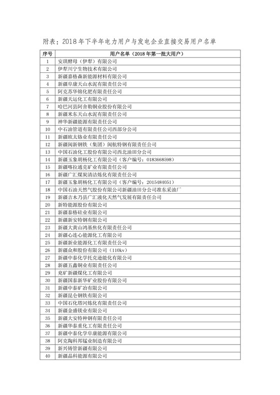 457家!新疆公示2018年下半年直接交易的電力用戶名單