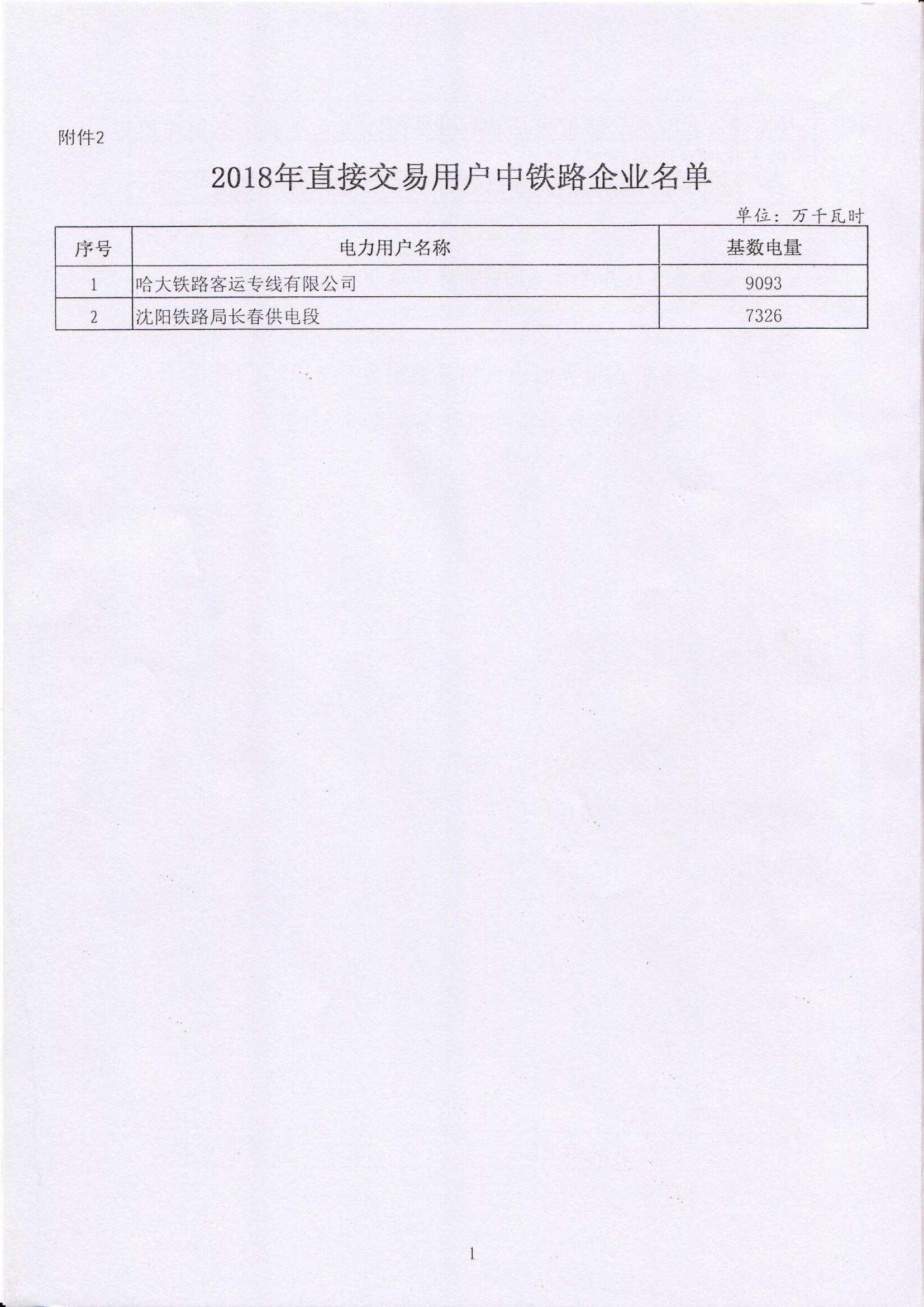 為進(jìn)一步降低鐵路用電成本,調(diào)整哈大鐵路客運(yùn)專(zhuān)線有限公司等2戶企業(yè)的直接交易基數(shù)電量(見(jiàn)附件2)