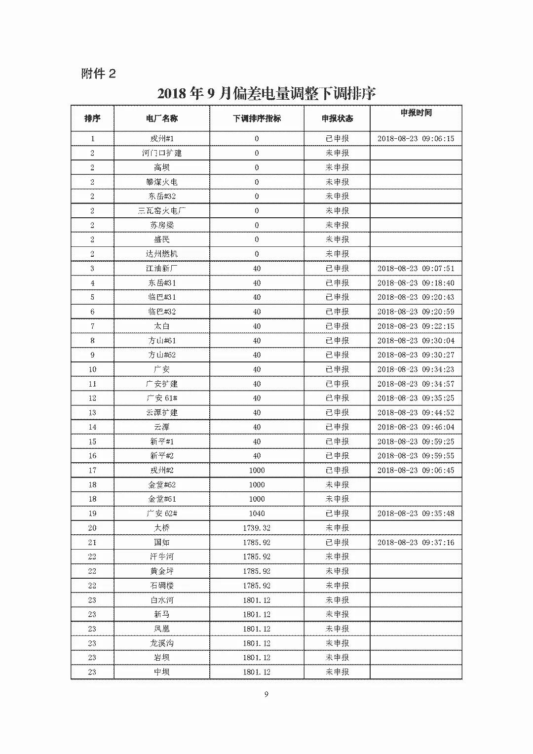 四川電力交易中心于8月23日開(kāi)展了2018年9月偏差電量調(diào)整交易,共215家發(fā)電廠(調(diào)度單元)進(jìn)行了申報(bào), 30家未申報(bào)。按《四川省2018年省內(nèi)電力市場(chǎng)化交易實(shí)施方案》(川經(jīng)信電力〔2018〕29號(hào))、《2018年四川電力交易指導(dǎo)意見(jiàn)》(川監(jiān)能市場(chǎng)〔2018〕40號(hào))的要求,根據(jù)各發(fā)電廠(調(diào)度單元)的申報(bào)價(jià)格,形成了9月用于承擔(dān)合同完成偏差的上調(diào)排序和下調(diào)排序,現(xiàn)予以公告。