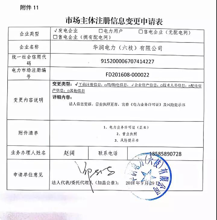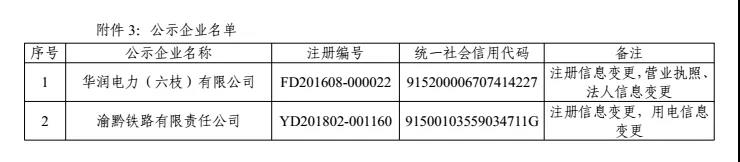 貴州關(guān)于華潤電力(六枝)有限公司等2家市場主體注冊信息變更的公示