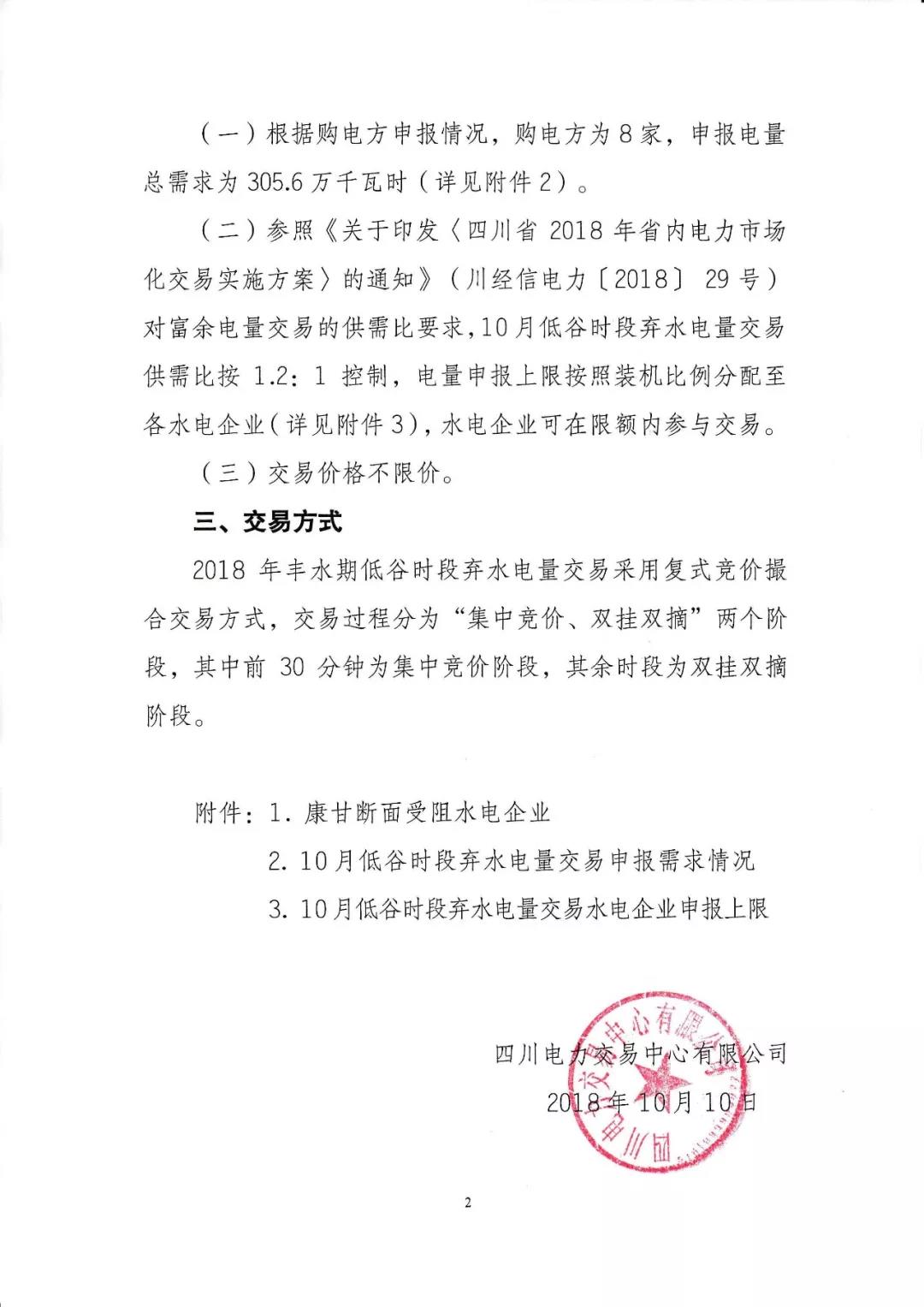 公告 | 四川關于開展2018年10月低谷時段棄水電量交易的公告