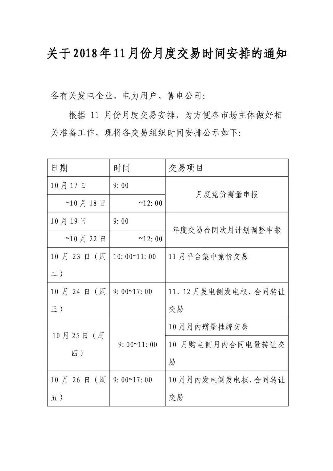 江蘇關(guān)于2018年11月份月度交易時(shí)間安排的通知