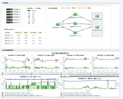對(duì)多種數(shù)據(jù)庫(kù)(ORACLEDB2、SYBASE、SQL SERVER、MySQL)、中間件(IIS、TOMCAT、WebSphereWebLogic)等以及其承載的業(yè)務(wù)系統(tǒng)進(jìn)行了有針對(duì)性的個(gè)性化監(jiān)控,突出了組件間的關(guān)聯(lián)關(guān)系與性能狀態(tài)。