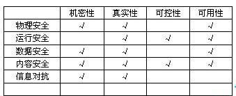 綜合信息安全的層次性特性與安全屬性特性,可以形成一個信息安全概念的經(jīng)緯線,如表1所示: