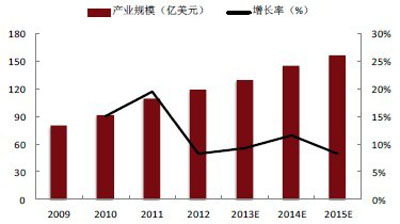 圖2:2009-2015年中國大數(shù)據(jù)產(chǎn)業(yè)規(guī)模及預測(億美元)