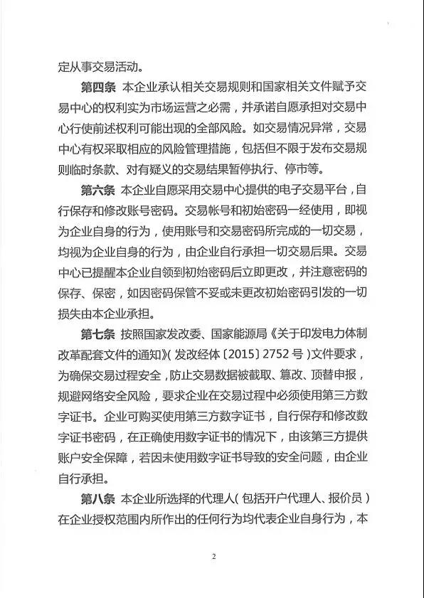 6.為提供更高效更快捷的方式來更好的服務(wù)企業(yè)用戶,交易中心為二級(jí)用戶(零售用戶)開通了交易平臺(tái)賬號(hào),為避免影響電力用戶2019年正常入市交易并享受用電優(yōu)惠,本公司將統(tǒng)一為各用戶進(jìn)行申報(bào)工作。如未能在申報(bào)截止日期前提供申報(bào)材料,電力用戶后期需自行前往省交易中心申報(bào),手續(xù)較為繁瑣,請(qǐng)各用戶務(wù)必重視此次申報(bào)工作。