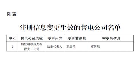 河南鶴壁朝歌熱力有限責(zé)任公司注冊信息變更生效