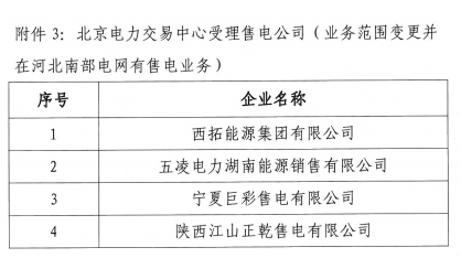 河北新增北京推送的9家售電公司 另有4家業(yè)務(wù)范圍、1家注冊信息變更生效