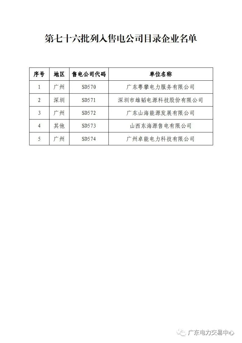 日前廣東電力交易中心公布第七十六批列入售電公司目錄企業(yè)名單,詳情如下: