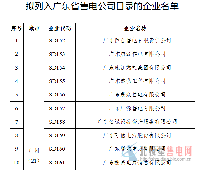 廣東:公布第五批列入售電公司目錄企業(yè) 兩家公司需補(bǔ)充材料
