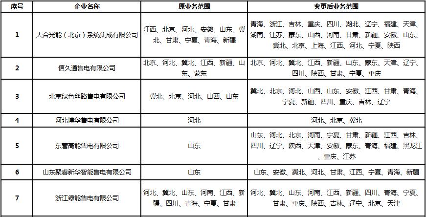 北京新公示14家業(yè)務(wù)范圍有變更售電公司