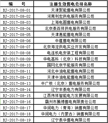 2017年10月09日,北京電力交易中心公布天津聚能售電有限公司等20家售電公司的公示結(jié)果。經(jīng)核實,按照國家發(fā)改委、國家能源局《售電公司準入與退出管理辦法》有關(guān)規(guī)定,中標售電有限公司注冊暫不生效,可自愿提交