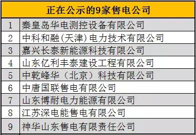 在公示的9家售電公司名單如下: