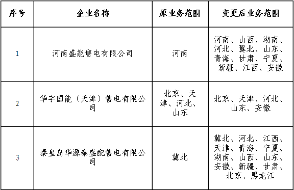 按照國(guó)家發(fā)改委、國(guó)家能源局《售電公司準(zhǔn)入與退出管理辦法》的要求,北京電力交易中心受理了下列售電公司的業(yè)務(wù)范圍變更申請(qǐng),對(duì)售電公司提交的變更申請(qǐng)材料進(jìn)行了完整性核驗(yàn),現(xiàn)將企業(yè)名單及有關(guān)情況予以公示。