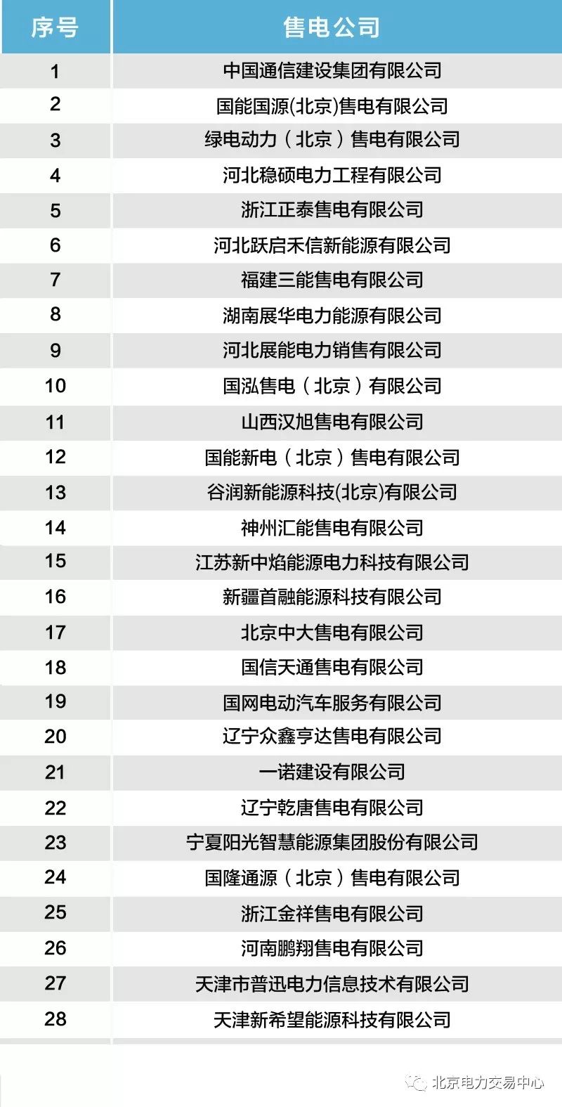 7月4日,北京電力交易中心發(fā)布了售電公司注冊(cè)公示公告,公示中國通信建設(shè)集團(tuán)有限公司在內(nèi)的28家售電公司的注冊(cè)信息。