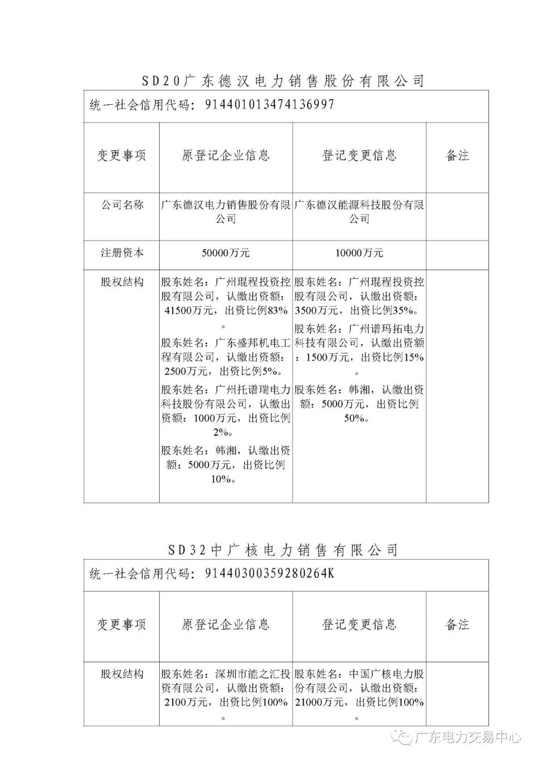 通知 | 關(guān)于公布深圳市深電能售電有限公司等七家售電公司注冊信息變更的通知