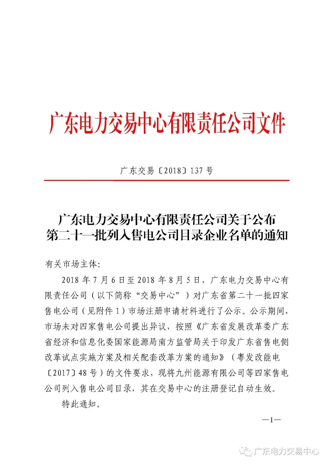 2018年7月6日至8月5日,廣東電力交易中心對(duì)廣東省第二十一批四家售電公司市場(chǎng)注冊(cè)申請(qǐng)材料進(jìn)行了公示。公示期間,市場(chǎng)未對(duì)四家售電公司提出