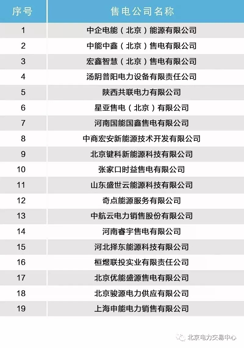 北京公示19家售電公司的注冊(cè)信息