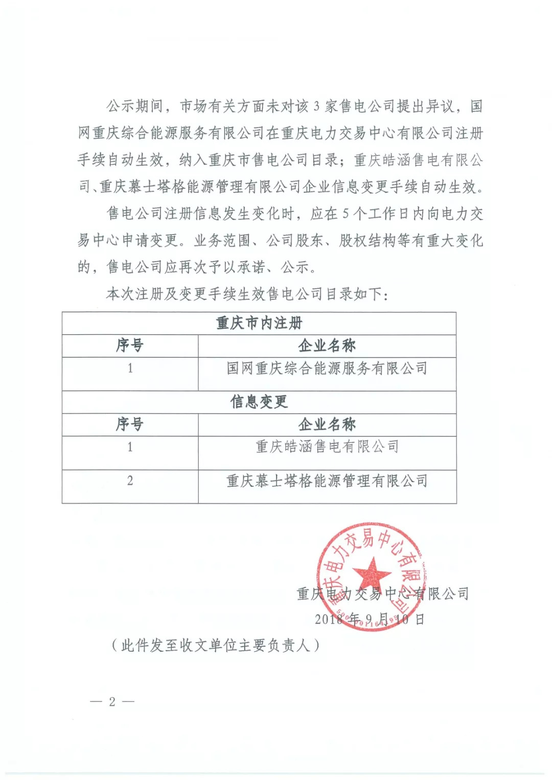 重慶新增1家售電公司(2018年第八批)及2家信息變更生效