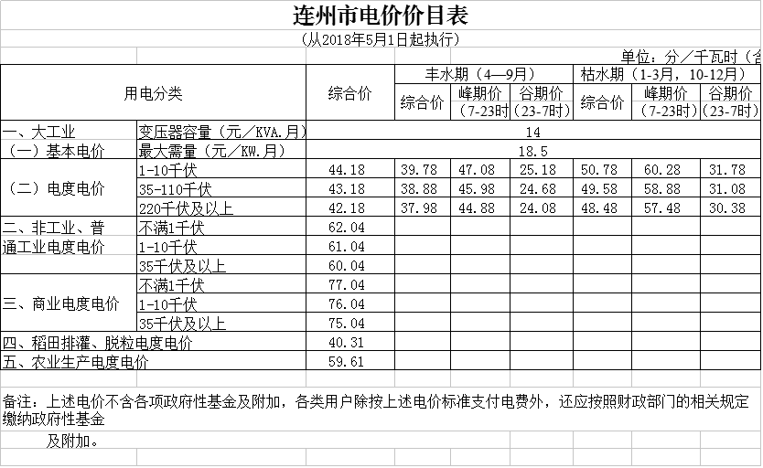 一、全省除深圳市外一般工商業(yè)電度電價每千瓦時統(tǒng)一降低0.58分(含稅,下同);深圳市的一般工商業(yè)電價和大工業(yè)電價已合并為工商業(yè)及其他電價,其各類工商業(yè)及其他電價均每千瓦時統(tǒng)一降低0.12分。各地各用戶調(diào)價后的具體電價標(biāo)準(zhǔn)見附件。