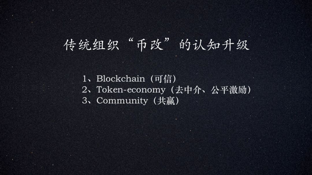 9、傳統(tǒng)組織“幣改”的認(rèn)知升級(jí)是通過(guò)區(qū)塊鏈技術(shù)實(shí)現(xiàn)可信,通過(guò)通證經(jīng)濟(jì)實(shí)現(xiàn)去中介和激勵(lì),通過(guò)社區(qū)協(xié)作實(shí)現(xiàn)共贏。